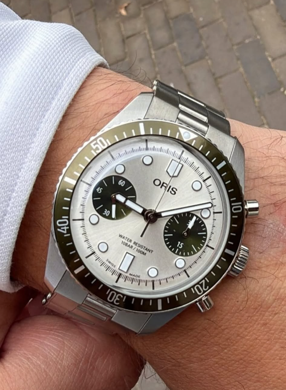 De bekende retro-look is terug, nu met frisse oceaangroene details en een zilverkleurige wijzerplaat. Achter het vintage uiterlijk zit modern vakmanschap: het Oris Calibre 771 uurwerk is automatisch en heeft een gangreserve van maar liefst 62 uur. Een stoere en stijlvolle duik in de tijd.