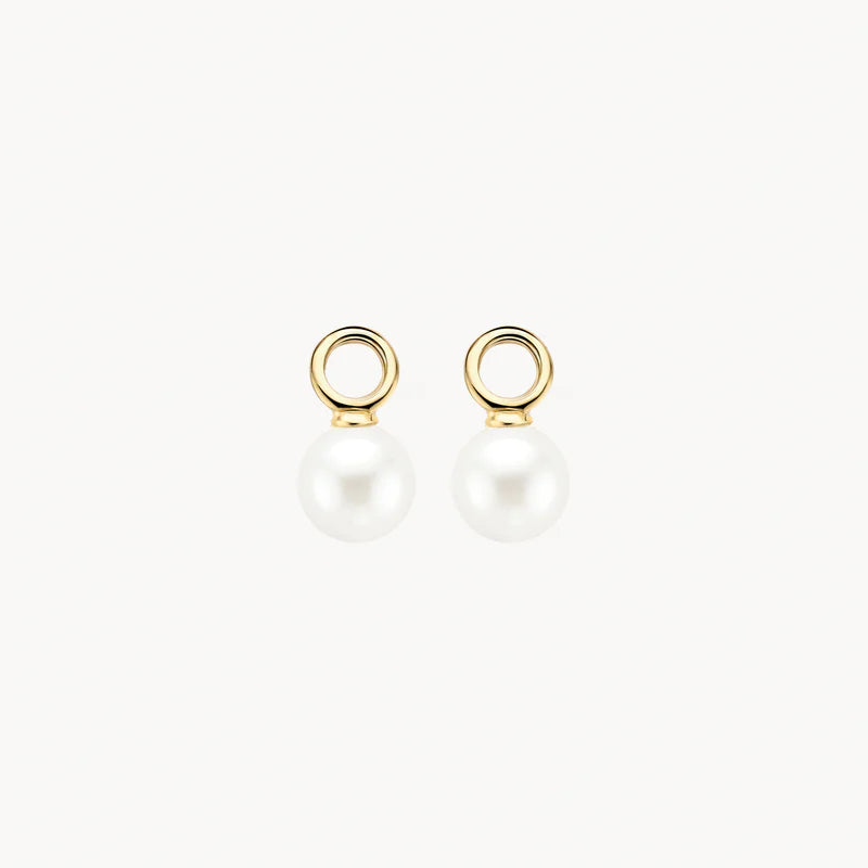 De Swarowski-parels met een doorsnede van 6 mm geven deze oorbedels een klassieke uitstraling. De bedels zijn gemaakt van 14k geelgoud. Je schuift ze zo om een gladde oorring of om oorringen met pavé gezette zirkonia’s van maximaal 2,9 mm doorsnede.