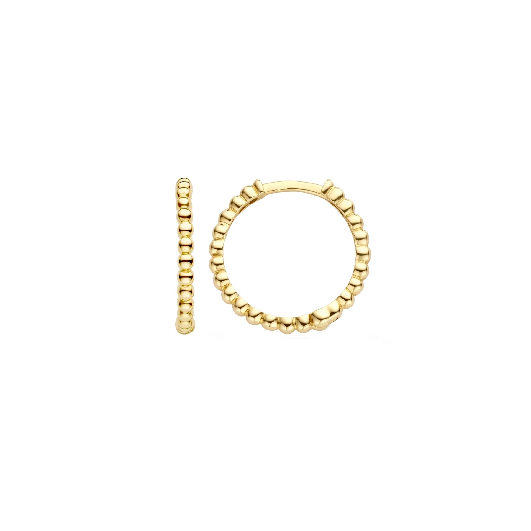 Het bolletjespatroon geeft deze 14k geelgouden ronde oorringen een speelse uitstraling. De doorsnede van is 14 mm. Deze oorringen staan prachtig op zichzelf, maar matchen ook mooi met andere (oor)sieraden uit onze collectie.