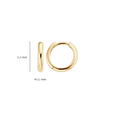 Deze perfect gepolijste geel gouden ooringen hebben een klassieke uitstraling. De oorbellen zijn te combineren met oorbedels waardoor ze eenvoudig zijn te transformeren van tijdloze, stijlvolle basic naar classics with a twist. De oorbellen hebben een breedte van 11,3 mm en een diameter van 2,1 mm.
