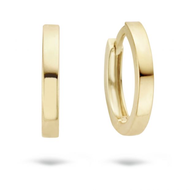 Deze geel gouden oorringen hebben zowel een elegante als moderne uitstraling. Dit maakt dat ze bij elke outfit passen en je ze kunt dragen bij elke gelegenheid. De oorbellen zijn te combineren met oorbedels voor een nog persoonlijker stijl. De oorbellen hebben een breedte van 11,4 mm en een diameter van 1,8 mm.