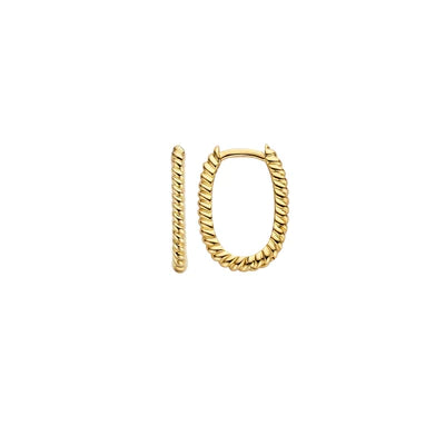 Alsof een gouden draad zich eromheen wikkelt: dat geeft deze ovaalvormige 14k geelgouden oorringen een heel bijzondere uitstraling. De doorsnede is 1.75 mm en ze staan prachtig op zichzelf, maar matchen ook mooi met andere (oor)sieraden uit onze collectie.