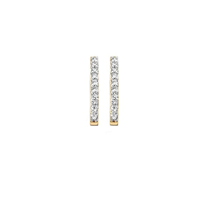 Deze elegante oorringen met witte zirkonia hebben een ovalen vorm. Ze zijn gemaakt van 14k geelgoud en hebben een dikte van 1,9 mm en een hoogte van 15,4 mm. Prachtig op zichzelf, maar ook heel mooi in combinatie met oorbedels en andere (oor)sieraden uit onze collectie.