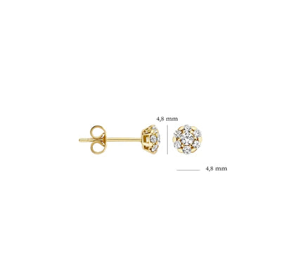Deze stijlvolle oorstekers met witte zirkonia schitteren je tegemoet. Ze zijn gemaakt van 14k geelgoud en hebben een doorsnede van 5,2 mm. Prachtig op zichzelf, maar ook heel mooi in combinatie met andere (oor)sieraden uit onze collectie.