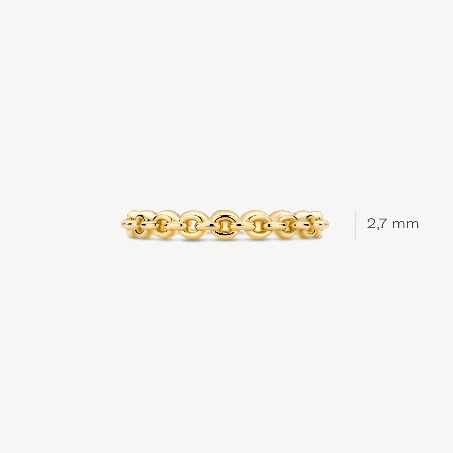 Het design van in elkaar grijpende ringetjes geeft deze 14k geelgouden ring een speelse uitstraling. De band heeft een doorsnede van 2,7 mm en de ring is prachtig op zichzelf of in combinatie met een of meer andere (aanschuif)ringen uit onze collectie.