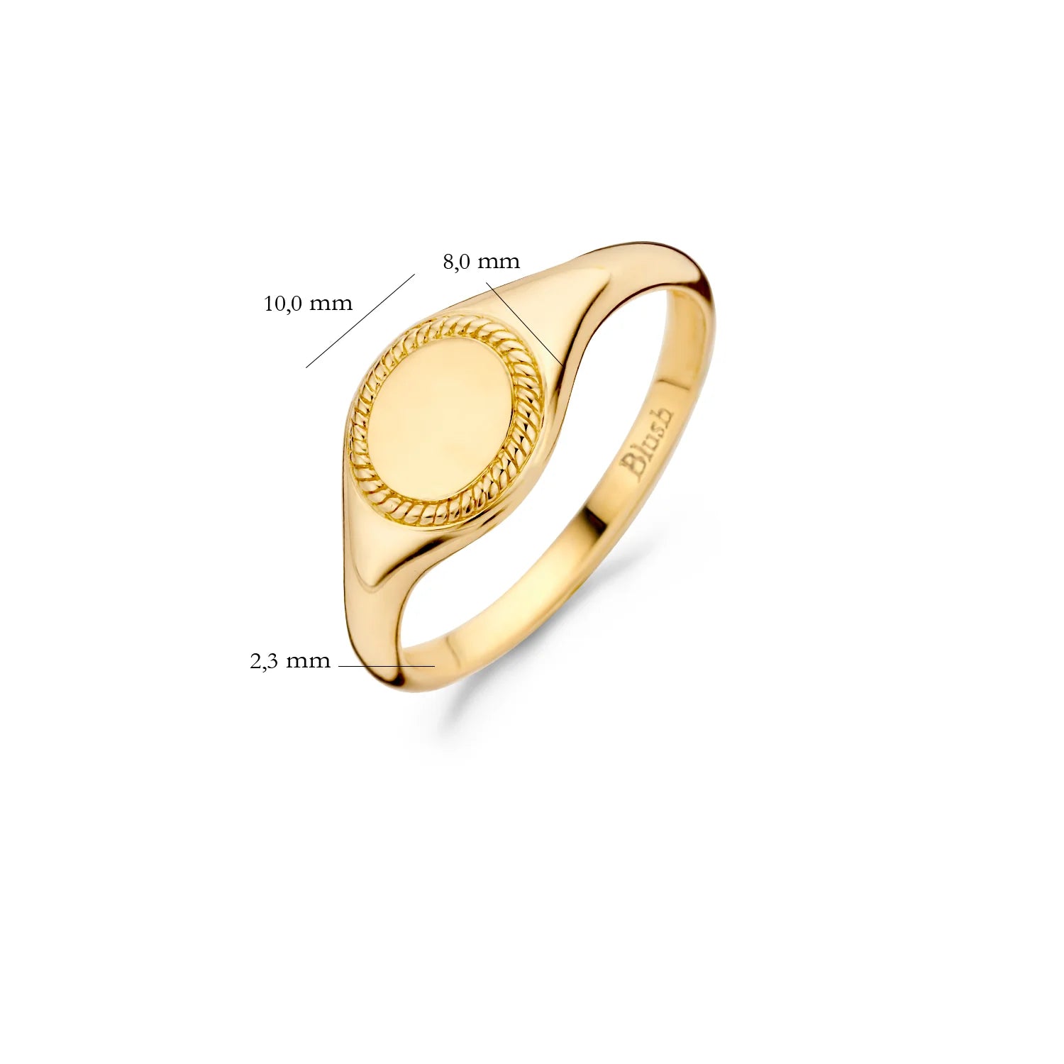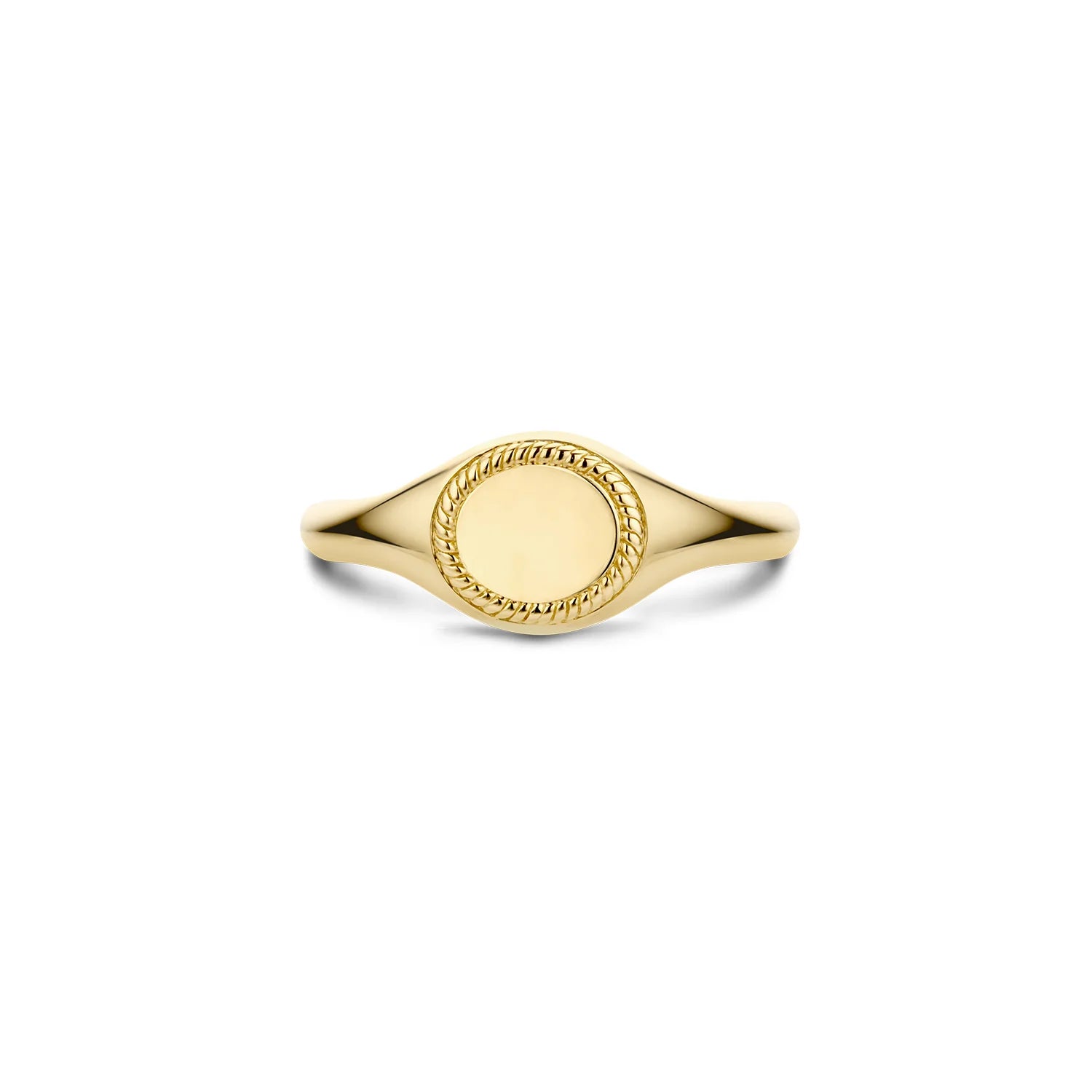 Deze tijdloze zegelring van 14k geelgoud heeft een modern gedraaid motief. De band heeft een doorsnede van 2,1 mm en de zegel een grootte van 7,6 bij 9,2 mm. Prachtig om op zichzelf te dragen of met andere ringen uit onze collectie.