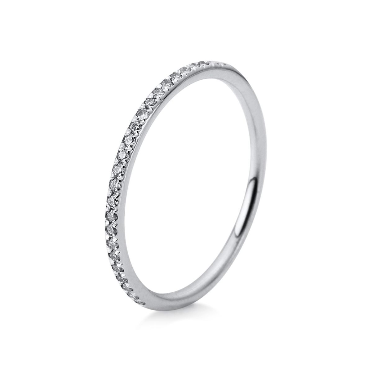 14 karaats witgouden rij-ring gezet met totaal 0.25 ct. briljant geslepen diamant.