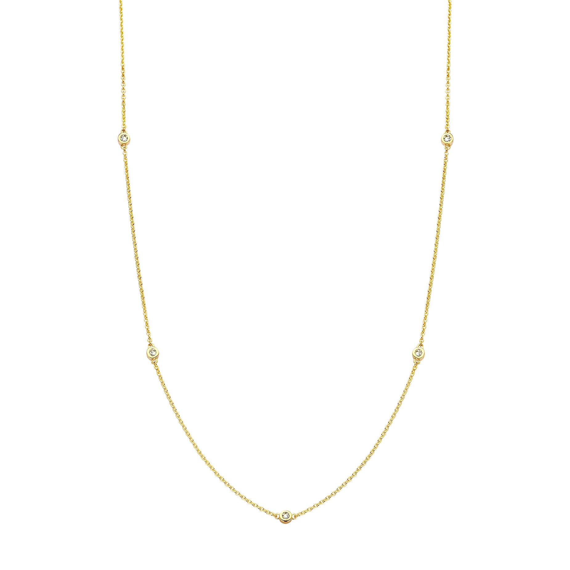 14 karaats geelgouden collier met 5x briljant geslepen diamant.