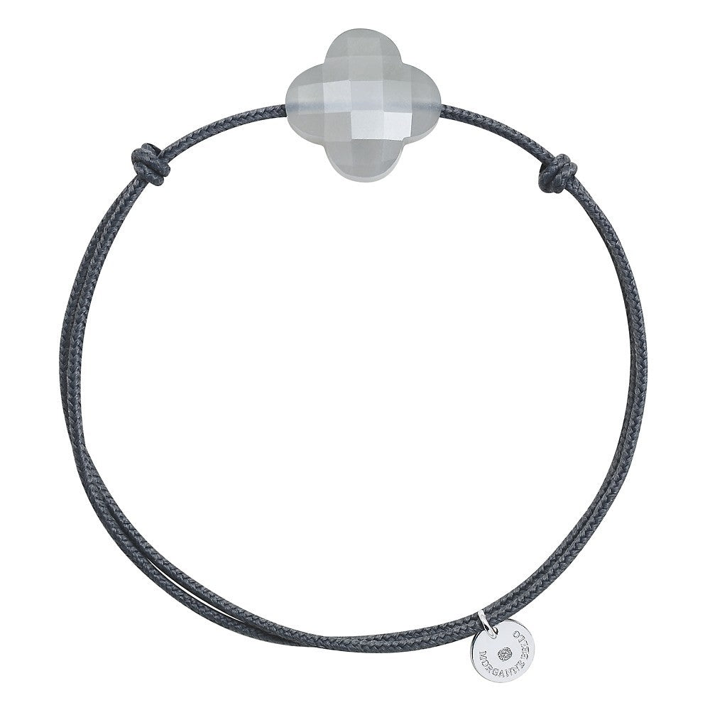Deze emblematische collectie plaatst de edelstenen in majesteit, zonder klauwen of zettingen, in contact met de huid. De klaverbladslijpvorm is een symbool van geluk. De grijze maansteen brengt zachtheid en ontvankelijkheid.