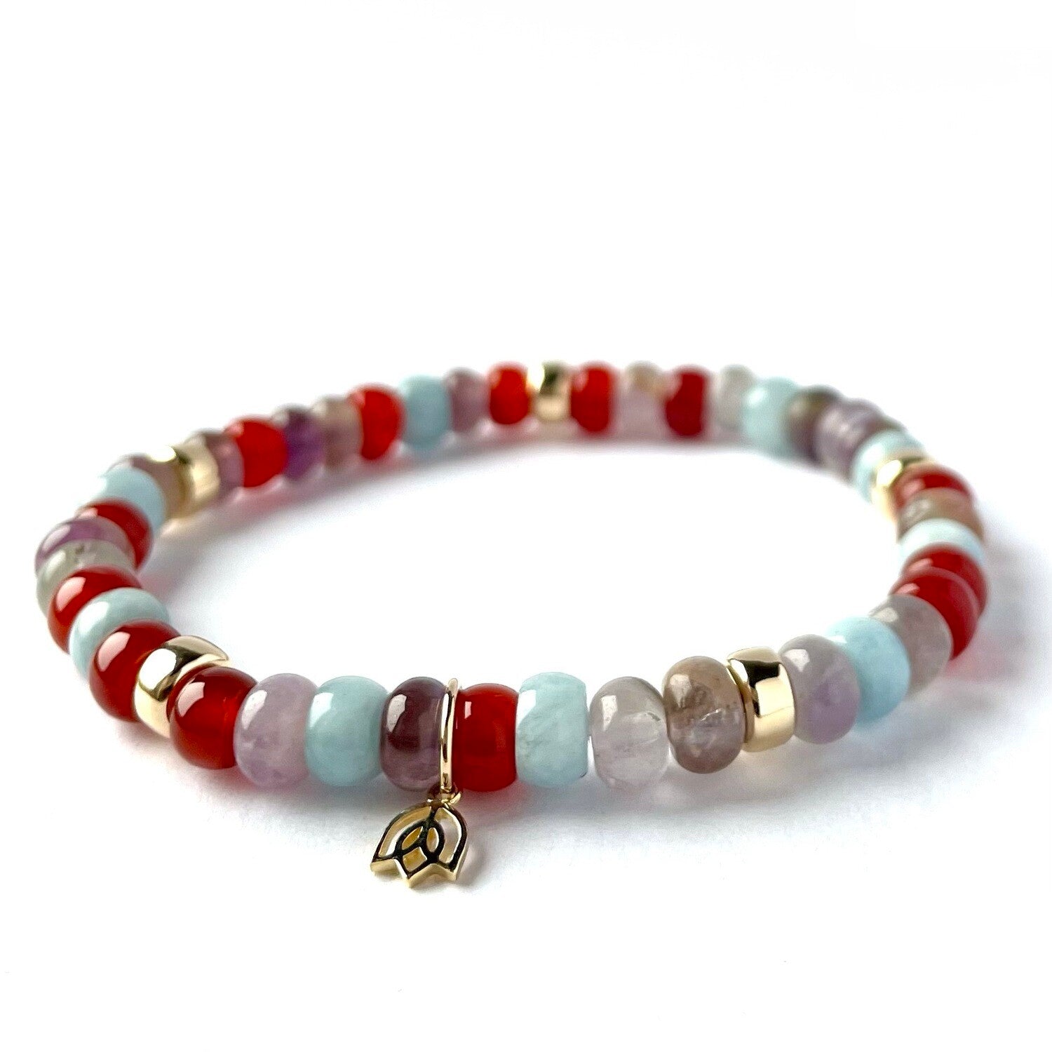 Edelstenen armband (6x4mm kralen) | Vijf 14kt gouden beads & tulp logo